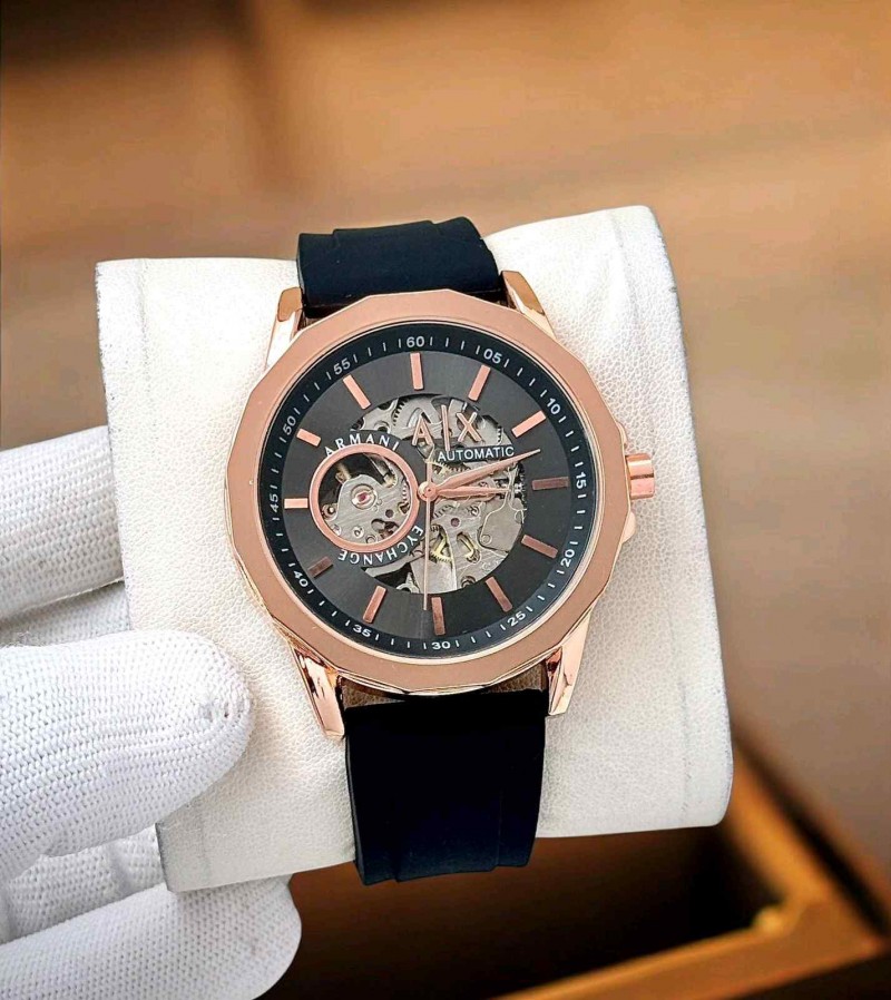 ARMANI EXCHANGE AUTOMATIC BLACK FIBER BELT ROSEGOLD BODY BLACK DIAL